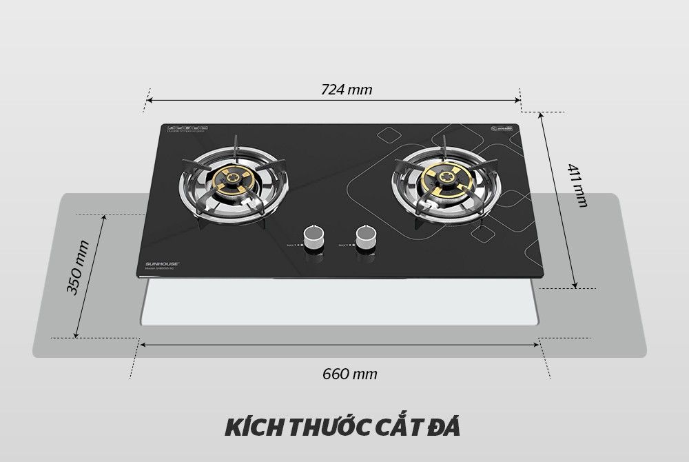Bếp gas âm kính SUNHOUSE SHB5515-SG có 2 lò nấu rộng rãi với giúp bạn chế biến được nhiều món ăn cùng lúc. Bạn có thể vừa nấu canh, vừa chiên xào thực phẩm một cách thật thoải mái.