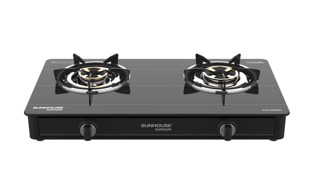 Bếp gas dương kính SUNHOUSE MAMA MMB0910 có 2 lò đun, điều khiển lửa to nhỏ bằng núm vặn tiện lợi, chế biến được nhiều món ăn cùng lúc. Mặt kính với gam màu đen sang trọng, tô điểm họa tiết trang trí vừa mang lại tính thẩm mỹ cao vừa có khả năng chịu lực, chịu nhiệt, đồng thời dễ dàng vệ sinh sau khi sử dụng