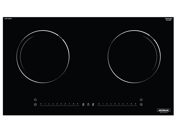 Bếp từ 2 vùng nấu Hesman HB 1200 với Mặt bếp được thiết kế hiện đại bằng mặt gốm thủy tinh Ceramic nhập khẩu có tác dụng chịu lực, chịu nhiệt tốt lên đến 700 Độ C , chống xước, giúp bạn dễ dàng vệ sinh sau khi dùng