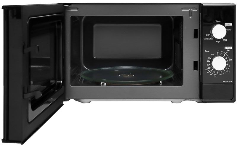 Lò vi sóng Panasonic NN-GM24JBYUE phủ sơn màu đen hiện đại, trang nhã, dung tích nhỏ gọn 20 lít, thích hợp dùng nấu nướng trong gia đình 2 - 3 người