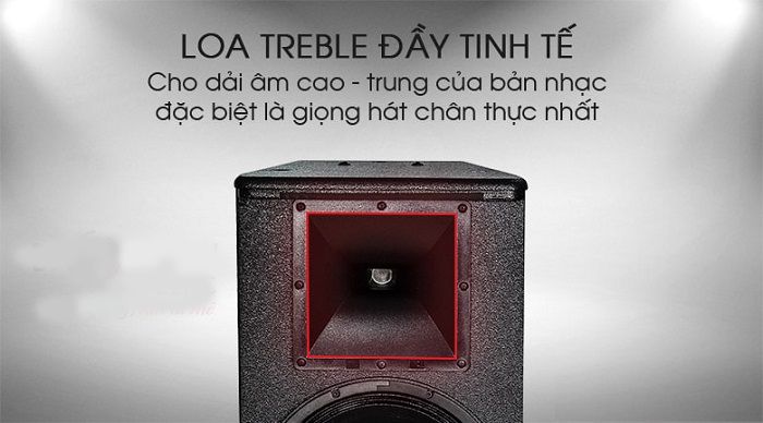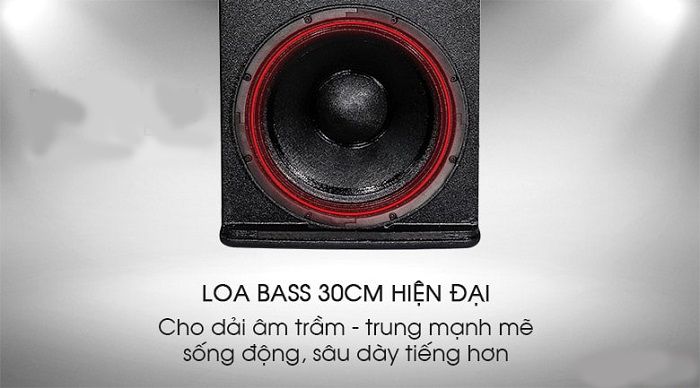 Với củ loa bass đường kinh 30cm hiện đại cho dải âm trầm và âm trung mạnh mẽ, sống động, sâu dầy tiếng hơn và loa treble 2,5 cm cho các dải âm cao - trung của bản nhạc đặc biệt là giọng hát chân thực nhất. Công suất hoạt động của loa từ 350W - 1400W có thể sử dụng cho các căn phòng có diện tích rộng từ 40m2 - 50m2.