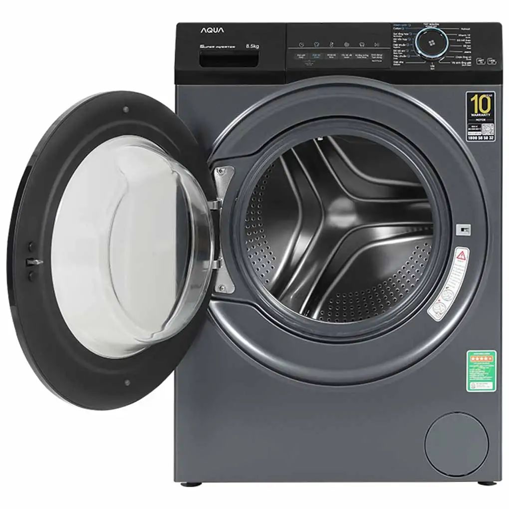 Khối lượng giặt 8.5kg, mẫu máy giặt AQUA cửa ngang này sẽ phù hợp cho gia đình có từ 3-5 thành viên, đảm bảo bạn có khả năng giặt sạch và tiết kiệm thời gian trong mỗi lần giặt.