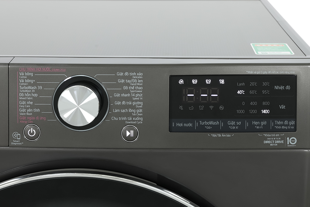 - Mẫu máy giặt này được thiết lập 14 chương trình hoạt động: vải bông, TurboWash 39, vải bông +, giặt yên tĩnh, giặt ngừa dị ứng, chu trình tải về, giặt nhanh 14 phút, giặt nhẹ, giặt ga giường, đồ hỗn hợp, giặt tay + đồ len, đồ thể thao, đồ tinh xảo và vệ sinh lồng giặt. Tùy theo từng loại quần áo, đồ dùng, chất liệu mà bạn lựa chọn chương trình thích hợp nhất.