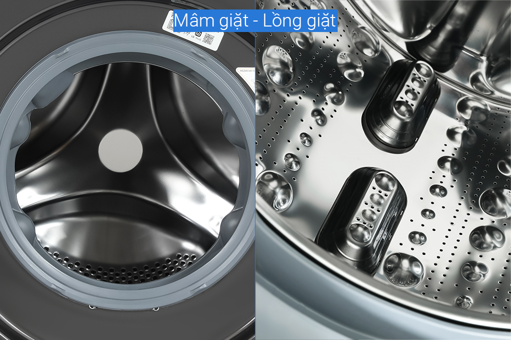 - Lồng giặt làm bằng thép không gỉ cứng cáp, bóng sáng, hạn chế gỉ sét, ít bám bẩn, hỗ trợ bạn vệ sinh dễ dàng. Bên cạnh lồng giặt có cần nâng thép không gỉ giúp tăng hiệu suất giặt, chống lại vi khuẩn đến 99%.