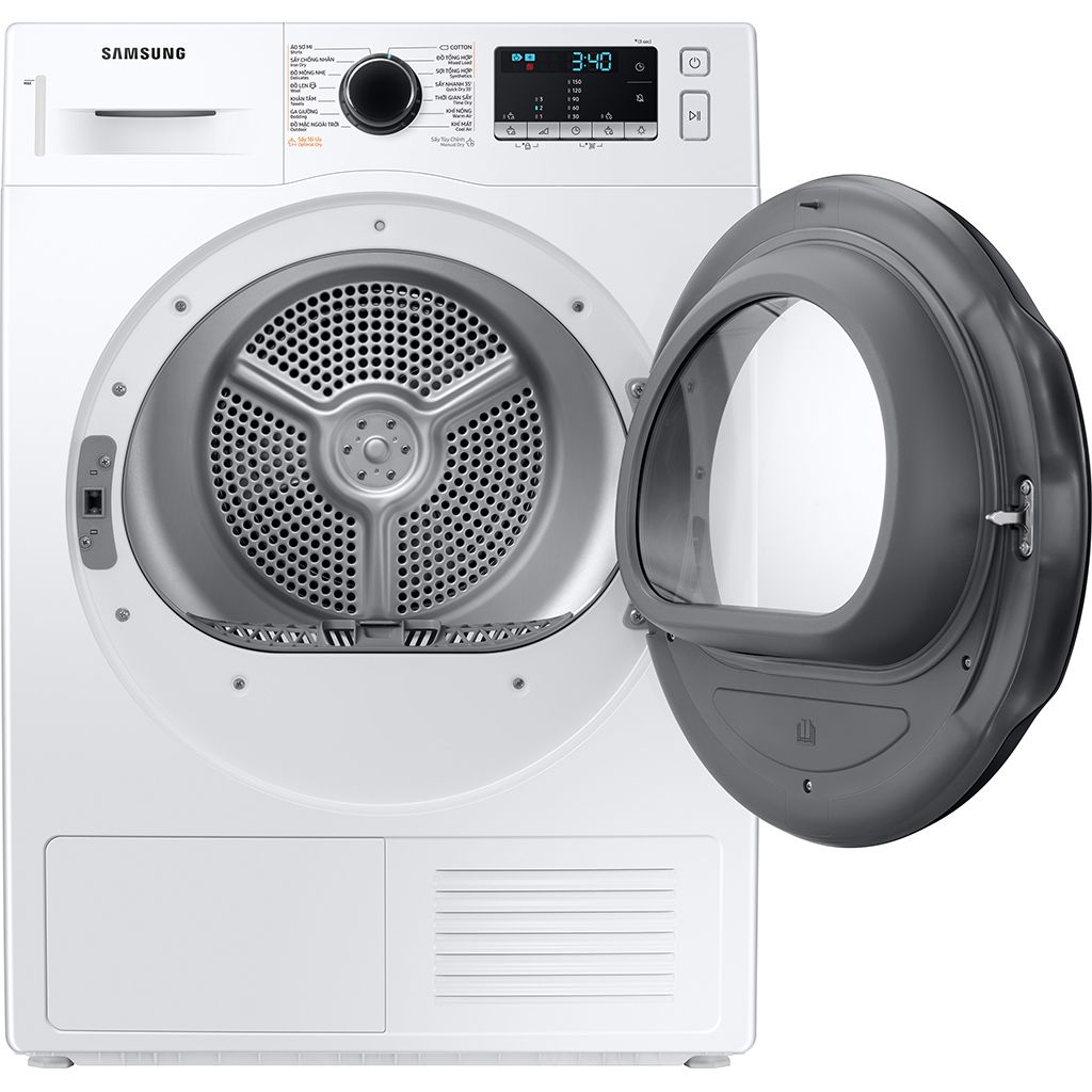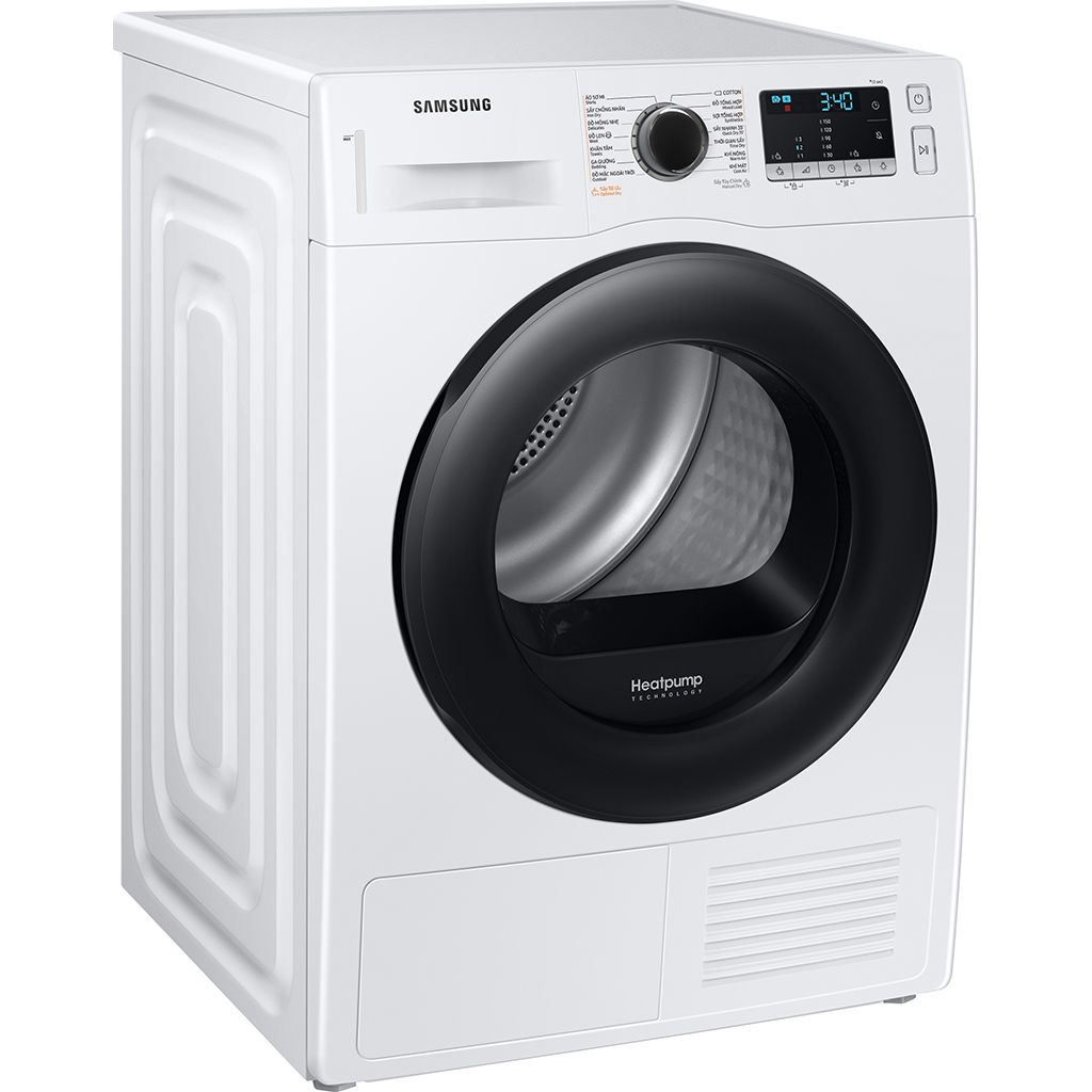 Chiếc máy sấy Samsung này có thiết kế cửa trước hiện đại, toàn bộ thân máy được bao phủ bởi gam màu trắng trung tính dễ dàng phối hợp với mọi không gian nội thất.