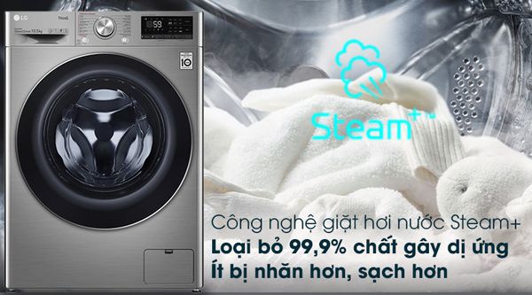 Chiếc máy giặt LG Inverter này còn được tích hợp công nghệ giặt hơi nước Steam+, giúp quần áo được diệt khuẩn cũng như loại bỏ những tác nhân gây dị ứng bám trên đồ, và giảm thiểu độ nhăn quần áo sau khi giặt.