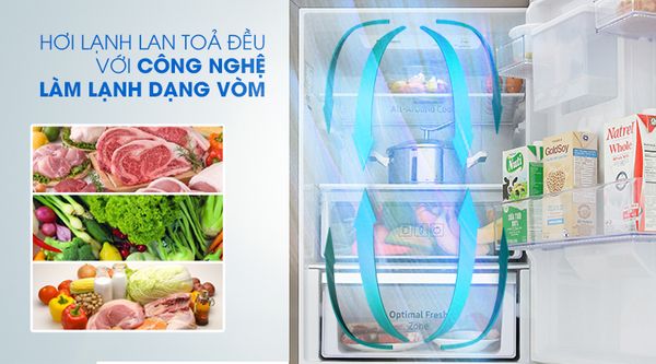 Công nghệ làm lạnh vòm cung cho phép tủ lạnh Inverter này điều tiết các luồng khí lạnh di chuyển theo hình vòm cung bên trong tủ lạnh, giúp khí lạnh có thể dễ dàng tới tất cả các vị trí trong tủ, làm lạnh nhanh hơn, duy trì tốt lượng nhiệt bảo vệ thực phẩm.