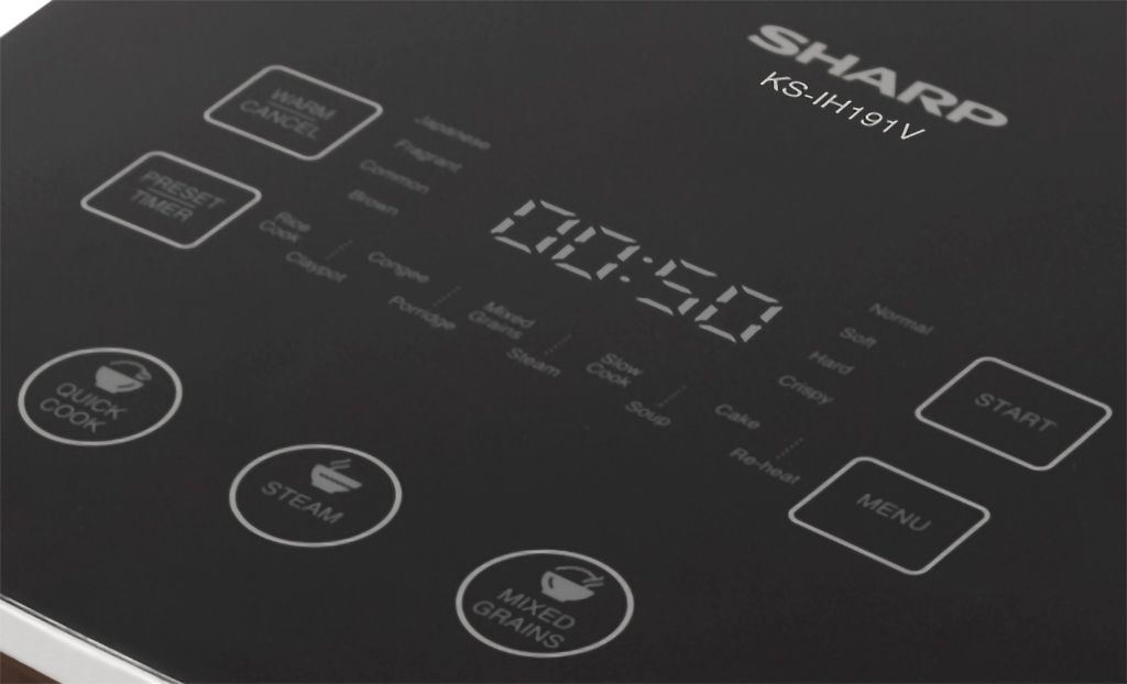 Nồi cơm cao tần Sharp 1.8 lít KS-IH191V-GL Có 17 chức năng nấu được cài đặt sẵn gồm nấu cơm, cơm niêu, nấu cháo trắng, nấu cháo thịt, gạo trộn (ngũ cốc hỗn hợp), hấp, nấu chậm, soup, làm bánh, hâm nóng, nấu nhanh cho bạn lựa chọn tùy theo nguyên liệu, công thức nấu.