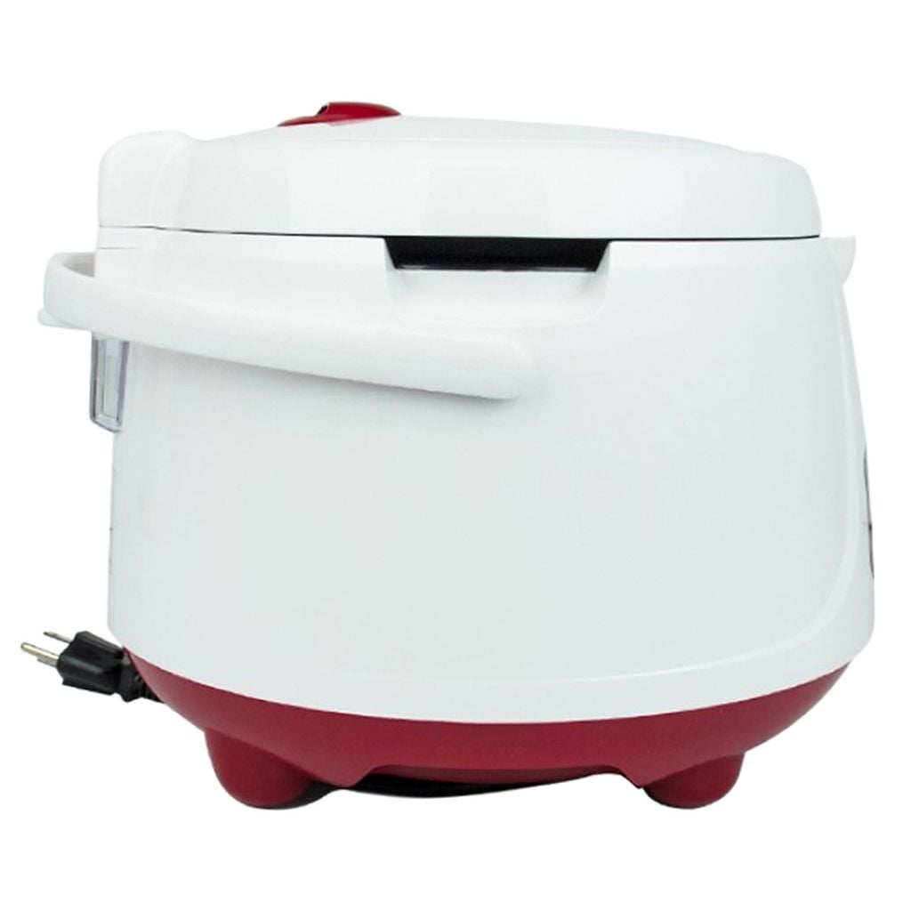 Nồi cơm nắp gài Cuckoo CR-1055 kết hợp giữa màu trắng và đỏ mang đến vẻ ưa nhìn cho gian bếp gia đình. Nồi được tặng kèm cốc đong gạo và muỗng múc cơm.