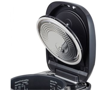Nồi cơm điện tử Panasonic 1.8 lít SR-HB184KRA tích hợp 3 mâm nhiệt lớn: nhiệt truyền từ dưới lên, từ nắp nồi xuống và quanh thành nồi cho cơm chín đều và thơm ngon hơn. Thiết kế nắp trong có dạng tổ ong giúp cơm chín mềm hơn. Nắp giữ hơi nước ngưng tụ bên trên giúp nước không bị rơi ngược lại nên cơm chín khô đều, không nhão.