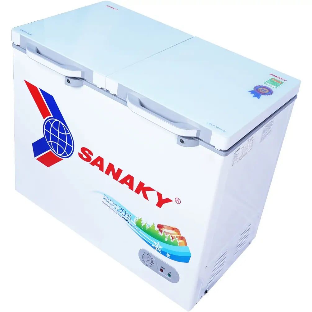 Tủ đông Sanaky 235 lít VH2899A2KD được thiết kế 2 nắp dở, giúp cho bạn dễ lấy và cho vào thực phẩm bên trong tủ cũng như giảm bớt tình trạng hơi lạnh thoát ra ngoài gây tiêu hao điện năng.