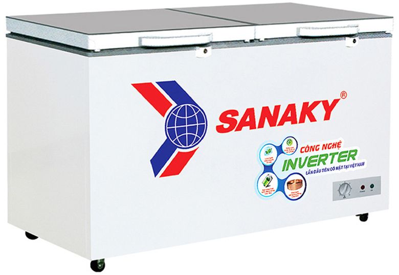 Tủ đông Sanaky Inverter 305 lít VH4099A4K thiết kế hai cánh mở vali được trang bị khóa an toàn rất chắc chắn, tránh việc tủ bị mở khi không mong muốn.