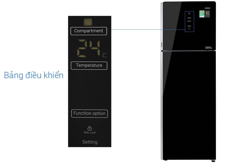 Mẫu tủ lạnh ngăn đá trên Aqua AQR-T359MA(GB) được thiết kế bảng điều khiển cảm ứng bên ngoài sang trọng, giúp bạn dễ dàng quan sát và thao tác nhanh chóng các chức năng hoạt động của tủ.