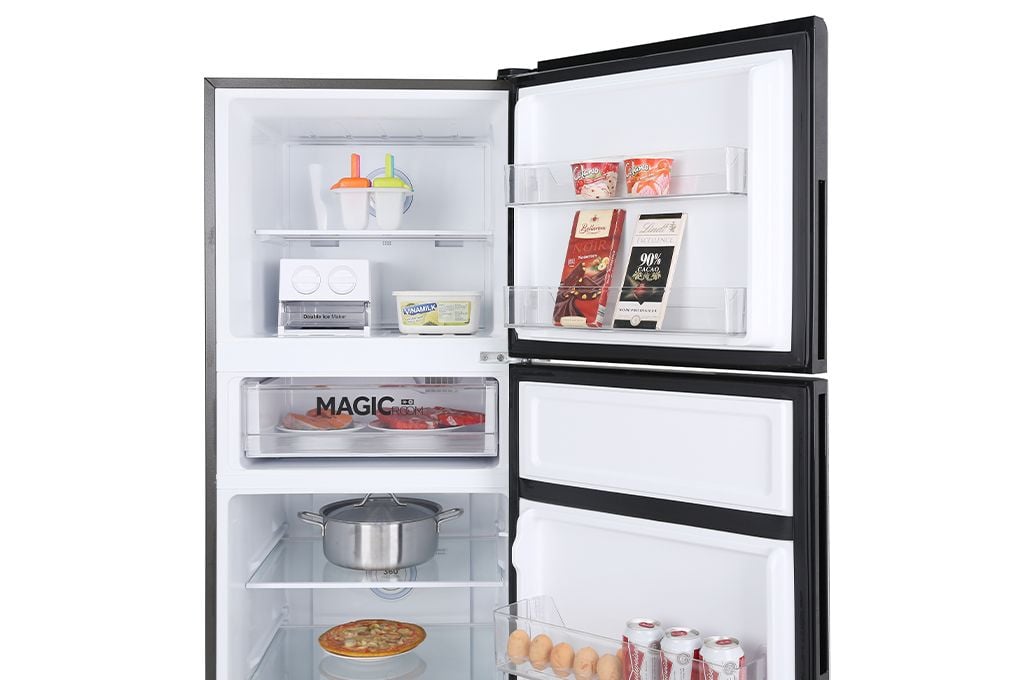 Tủ lạnh Aqua với ngăn chứa Magic Room trên tủ lạnh này bạn có thể thoải mái bảo quản được hầu hết các loại thực phẩm nhờ vào khả năng điều chỉnh được mức nhiệt dao động từ -18 độ C đến 5 độ C vô cùng tiện lợi.