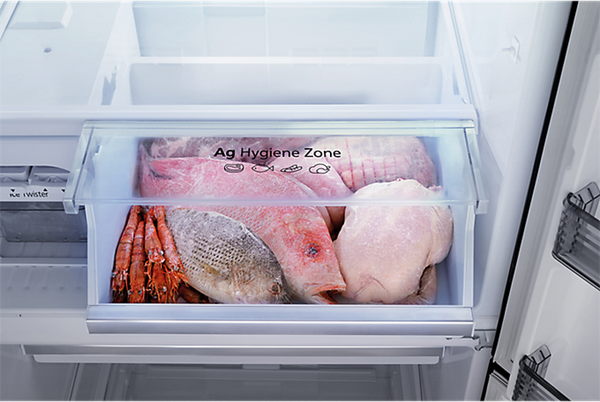 Với thịt cá cần trữ đông dài ngày, tủ lạnh Panasonic Inverter 550 lít NR-DZ601YGKV trang bị riêng ngăn trữ đông thịt Ag Hygience Zone giúp ngăn cách, tách biệt hoàn toàn mùi hôi tanh của thịt cá và các loại thực phẩm nặng mùi khác để tránh làm ảnh hưởng đến những viên đá, ly kem mát lạnh được bảo quản chung ở ngăn đông. Kết hợp tinh thể bạc mang tới hiệu quả diệt khuẩn, ngăn mùi tối ưu. Ngăn kéo có thể dễ dàng tháo lắp để vệ sinh.