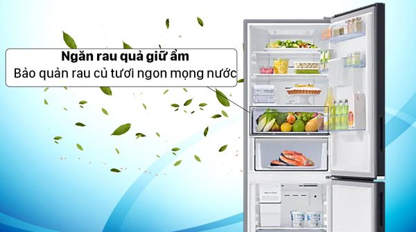 Tủ lạnh Samsung Inverter có ngăn rau quả có khả năng cân bằng độ ẩm và có dung tích lớn giúp người dùng thoải mái lưu trữ nhiều trái cây, rau củ và đảm bảo chúng tươi lâu, mọng nước.